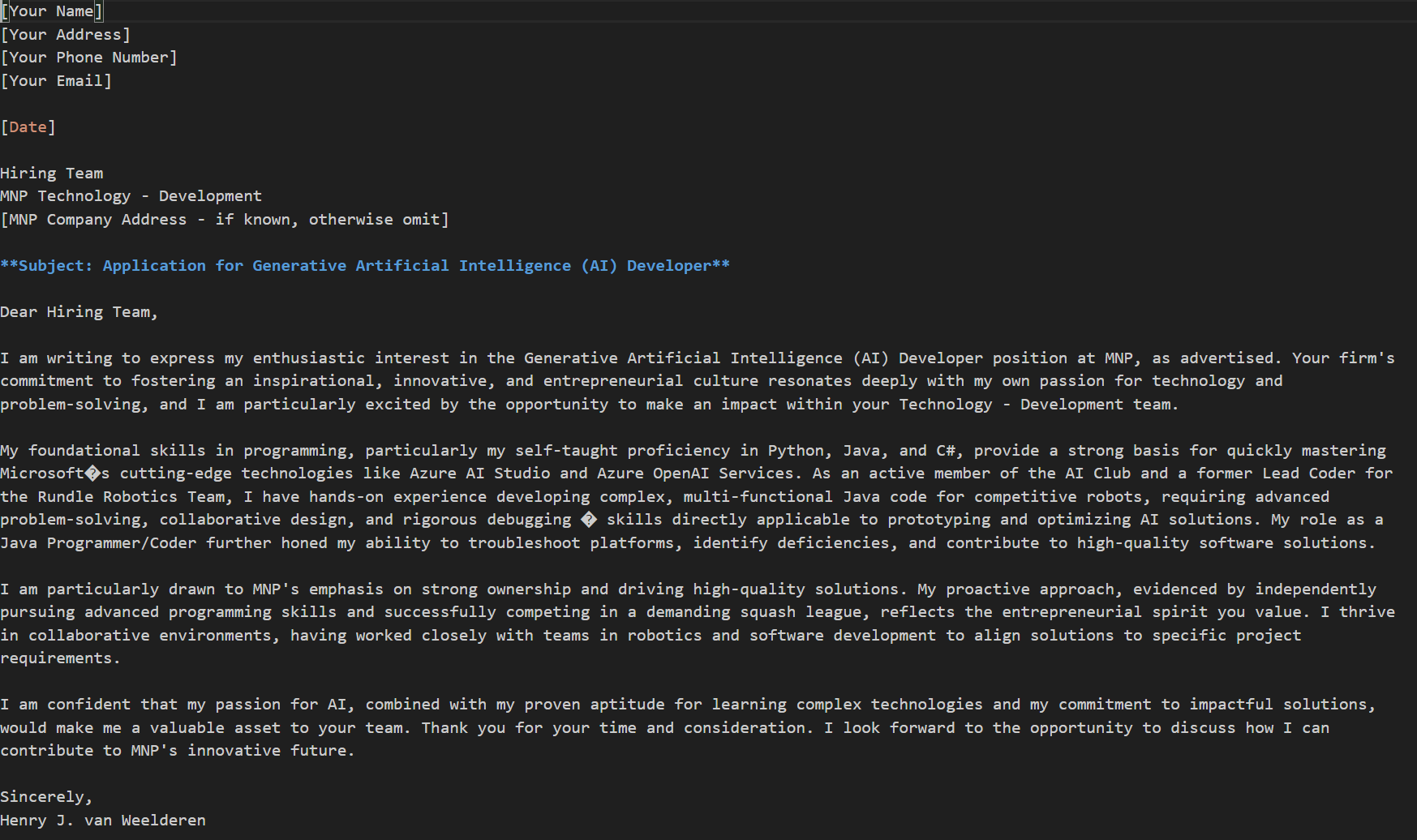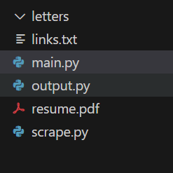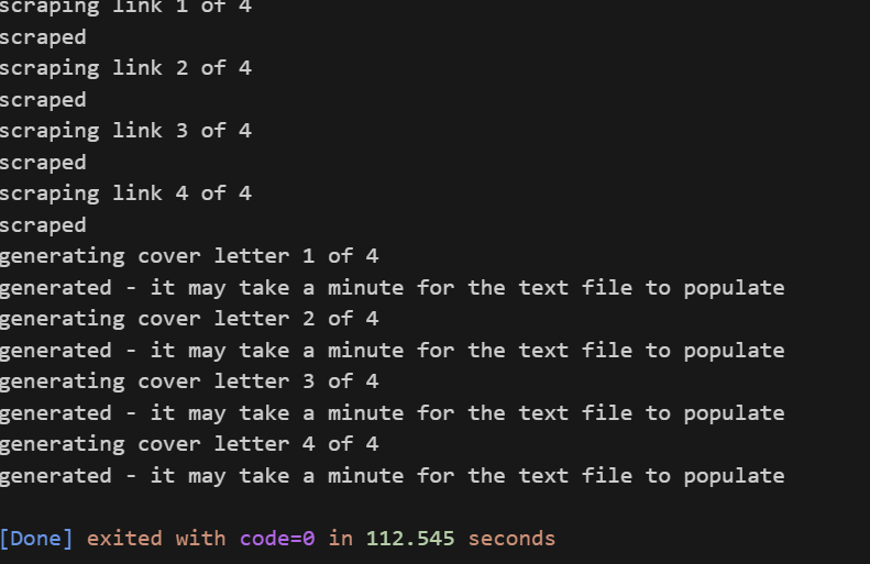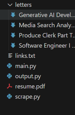 Python project that generates cover letters from LinkedIn application links and a given resume. Organizes responses into a folder as markdown files